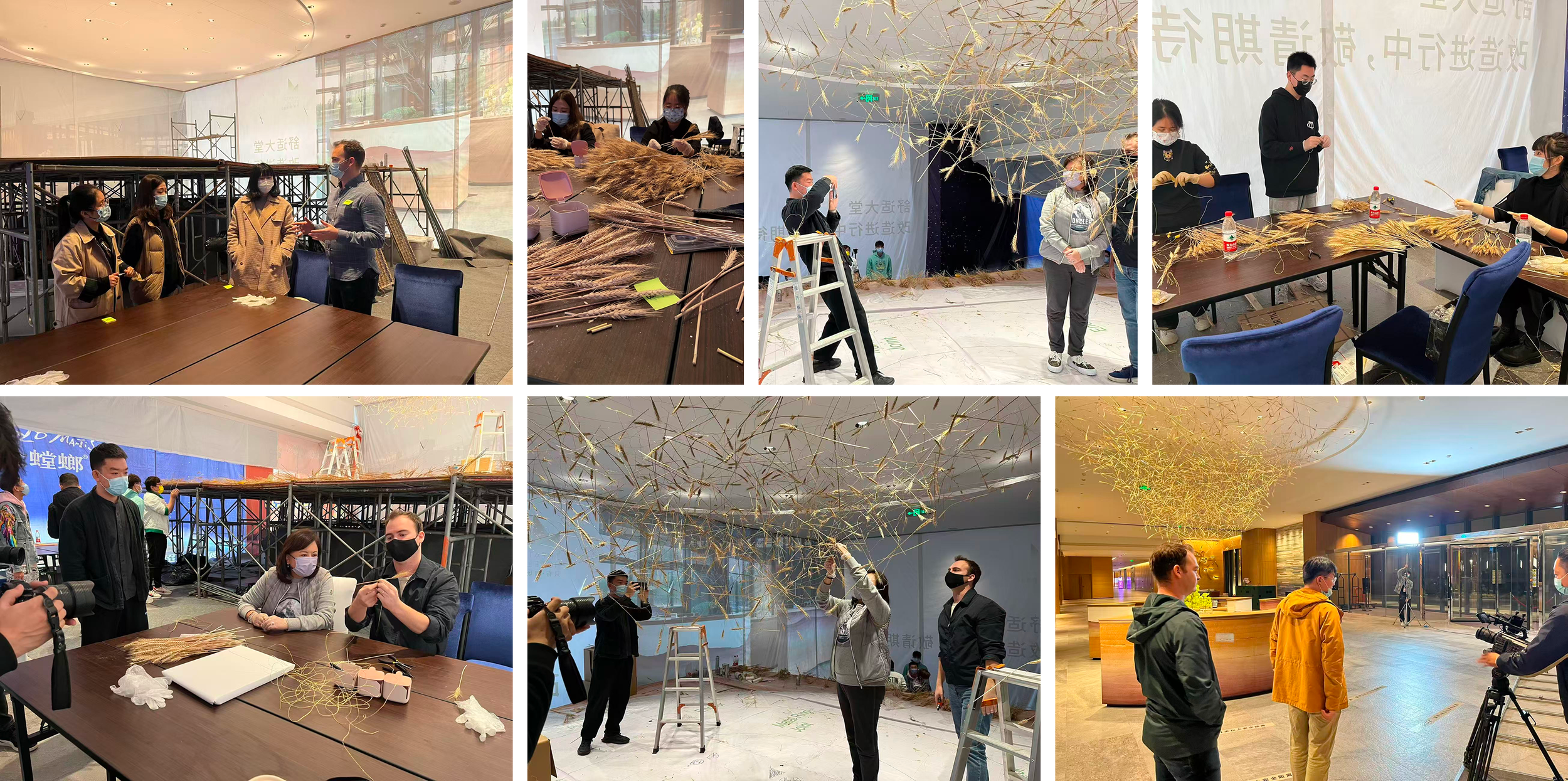 Community education became an essential part of our project as audience curiosity grew. To answer the question—"Why is the installation made this way?"—we launched hands-on workshops with students from Zhengzhou University, teaching them the craft of creating detailed wheat joints. We also invited our clients and hotel guests to engage in the creative process. The entire journey was documented in a video (shown above) to educate and involve the wider local community.