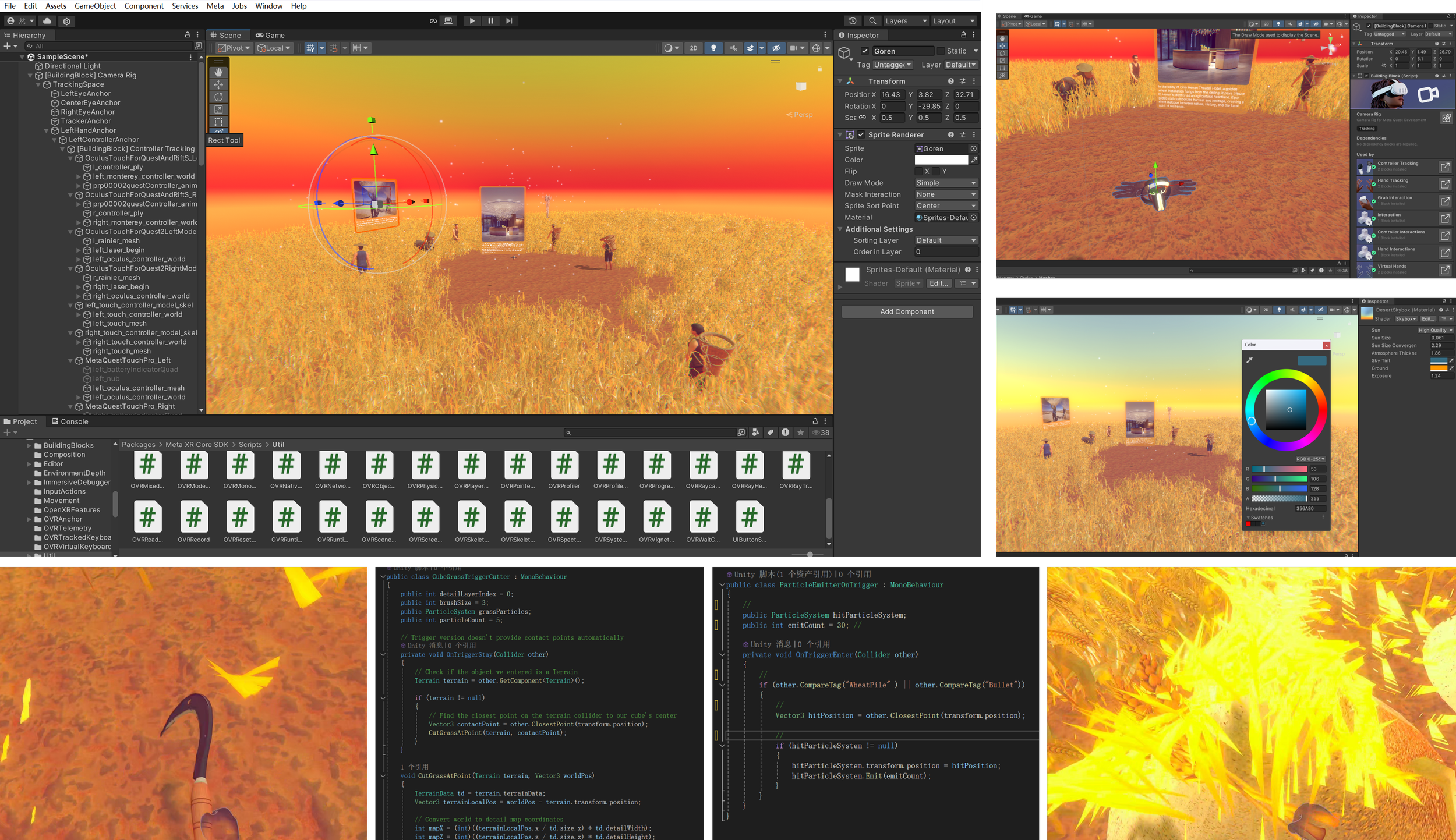 The creation of these materials was an extensive process, spanning from June 2020 to November 2021. It involved harvesting and drying the wheat, cleaning it of insects, trimming redundant parts, assembling metal joints, and finally, installation. Our goal is to use Virtual Reality to visualize this intricate, year-long journey from raw material to finished structure.